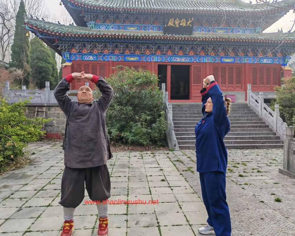 learning shaolin eight section broicade in the temple
